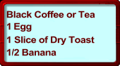 The 3-day Diet, below, is designed to give you a quick-start to weight loss. We've used it, and find it to be successful! Since it works on the concept of chemical breakdown, no substitutes should be made. Salt and pepper can be added; nothing else. You should lose up to 10 pounds after three days! Need to lose more... Just eat responsibly for four days, then repeat the 3-day diet again!